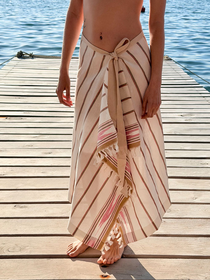 Hem yere serip peştemal ya da plaj havlusu olarak kullanabileceğiniz, hem de belinize bağlayarak pareo eteğe dönüştürebileceğiniz çok amaçlı bir parça. Yazın en pratik ve vazgeçilmez eşlikçilerinden biri.